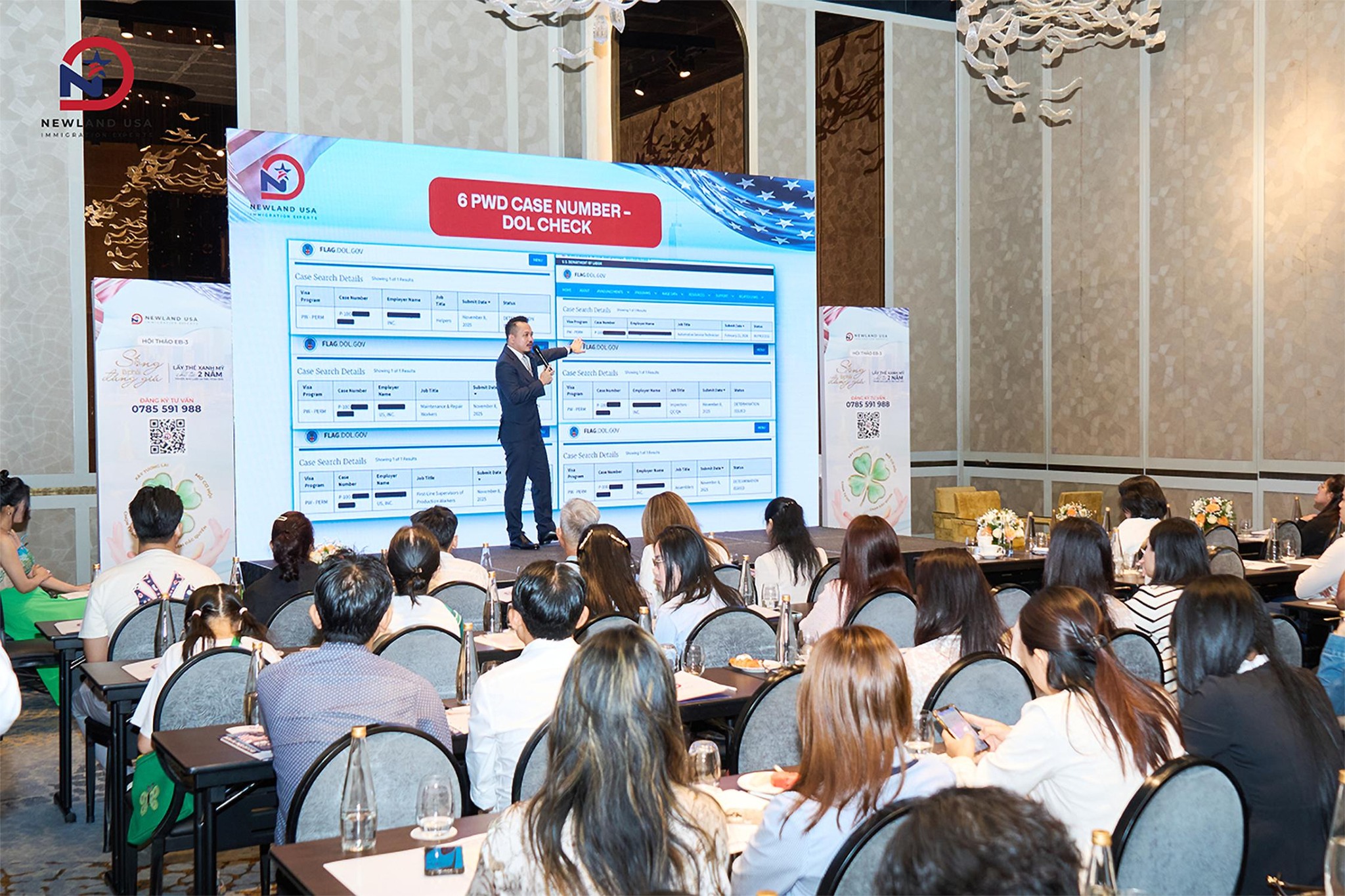 Với sự chia sẻ và phân tích sắc bén của ông Châu Tâm Luân – Nhà sáng lập kiêm Tổng giám đốc Newland USA trong phần Tọa đàm về cập nhật tình hình di trú Mỹ năm 2026, các khách mời đã có cái nhìn toàn diện về những biến động pháp lý và chính sách di trú. Đồng thời, ông Luân cũng làm rõ lý do vì sao năm 2026 được coi là “thời điểm vàng” mang tính quyết định để triển khai hồ sơ EB-3 Lao động Tay nghề. Tính minh bạch và mức độ khả thi của chương trình càng được khẳng định mạnh mẽ qua những câu chuyện chia sẻ kinh nghiệm “người thật – việc thật” của những khách hàng đầu tiên tại Việt Nam nhận Case Number LC diện EB-3 Lao động Tay nghề, tiếp thêm niềm tin vững chắc cho các đương đơn.