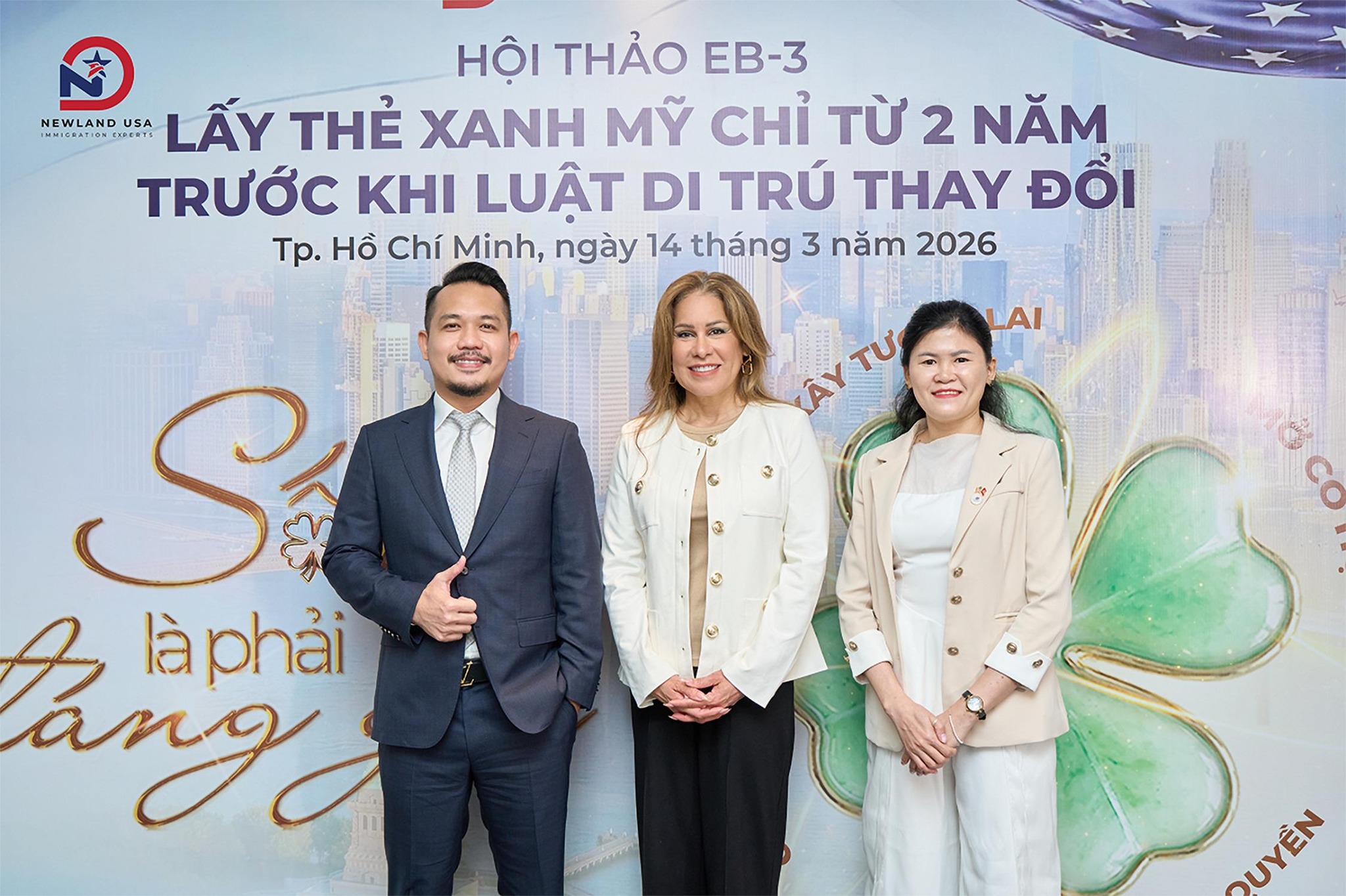 Ngày 14/3, hội thảo EB-3 “SỐNG LÀ PHẢI ĐÁNG GIÁ – LẤY THẺ XANH MỸ CHỈ TỪ 2 NĂM TRƯỚC KHI LUẬT DI TRÚ THAY ĐỔI” đã diễn ra thành công với sự tham dự của đông đảo khách mời tại khu vực TP.HCM. Sự kiện không chỉ mang đến bức tranh toàn cảnh về di trú Mỹ năm 2026 mà còn là bệ phóng vững chắc giúp các gia đình Việt tự tin nắm bắt cơ hội lấy thẻ xanh Mỹ chỉ từ 2 năm thông qua giải pháp EB-3 Lao động Tay nghề (Skilled Workers).